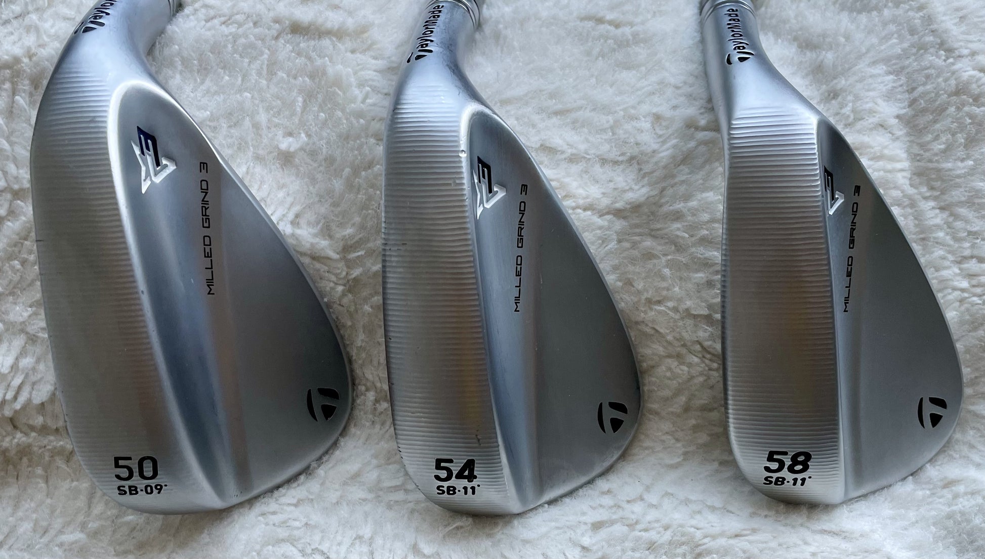 MG 3 er blant de aller beste Wedger på markedet nå, og med nyeste teknologi for å oppnå mer presisjon og spinn fra TaylorMade. De har føyd på mikro ribber mellom rillene på treff flaten som også skal ruste slik som du ser litt antydning til på bildene. Ellers er dette nye og lite brukte Wedger. Grepene er nye og ubrukte.